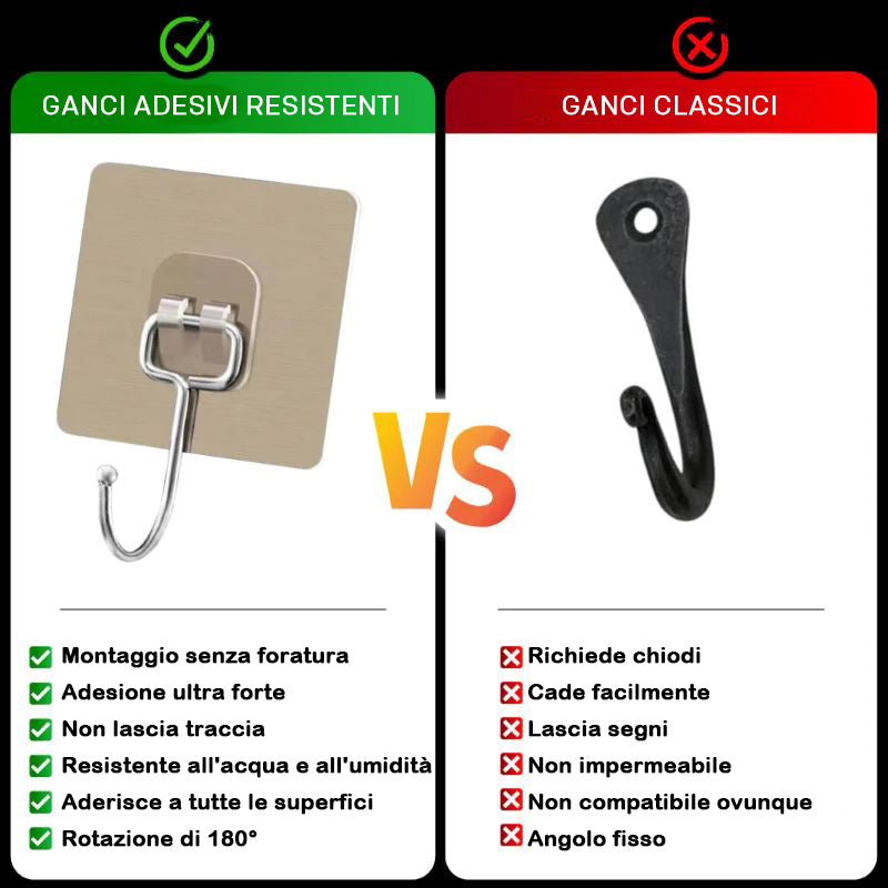 Ganci adesivi da parete resistenti - Montaggio senza chiodi per cucina, bagno e ufficio!