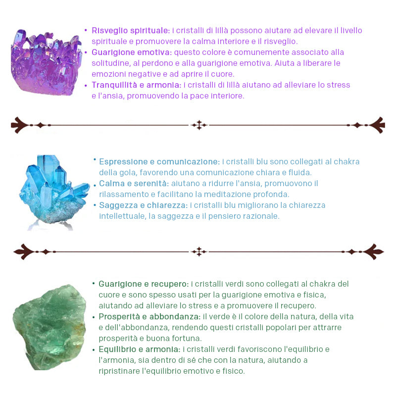 {"id":7820823822512,"title":"Cristalli a spirale Sacred Journey fatti a mano","handle":"cristalli-a-spirale-sacred-journey-fatti-a-mano","description":"\u003cp\u003e\u003cspan style=\"color: rgb(255, 128, 0);\"\u003e\u003cstrong\u003eDisponibili in una varietà di colori per energia positiva e trasformazione\u003c\/strong\u003e\u003c\/span\u003e\u003c\/p\u003e\n\u003cp\u003eI cristalli a spirale Sacred Journey sono disponibili in una varietà di colori vivaci, ognuno con la sua energia unica per migliorare il tuo spazio. Che tu preferisca blu calmanti, rossi energizzanti o verdi rilassanti, si ritiene che ogni colore risuoni con un diverso aspetto della trasformazione personale. Pieno di energia positiva, questo cristallo aiuta a elevare l'ambiente circostante, creare equilibrio e supportare il tuo viaggio verso la pace interiore. Scegli un colore che parli alla tua anima e inviti alla trasformazione che cerchi.\u003c\/p\u003e\n\u003cdiv style=\"text-align: center;\"\u003e\u003cimg src=\"https:\/\/cdn.shopify.com\/s\/files\/1\/0406\/6692\/3173\/files\/5_566cb0c1-6e85-4cc6-b2d8-e36af3a80506_480x480.jpg?v=1743495134\" alt=\"\" style=\"float: none;\"\u003e\u003c\/div\u003e\n\u003cp\u003e\u003cspan style=\"color: rgb(255, 128, 0);\"\u003e\u003cstrong\u003ePer energia positiva e trasformazione\u003c\/strong\u003e\u003c\/span\u003e\u003c\/p\u003e\n\u003cp\u003eOgni cristallo a spirale Sacred Journey è un potente strumento spirituale, realizzato a mano con i migliori cristalli naturali della miniera di quarzo sacro in Arkansas. Infuso di pura energia cosmica, irradia positività, equilibrio e trasformazione. Più di un semplice pezzo decorativo, questa spirale sfrutta i cicli eterni della natura per purificare il tuo spazio, attrarre abbondanza ed elevare la tua mente, corpo e spirito. Lascia che risvegli nuove dimensioni di pace, vitalità e armonia nella tua vita.\u003c\/p\u003e\n\u003cdiv style=\"text-align: center;\"\u003e\u003cimg src=\"https:\/\/cdn.shopify.com\/s\/files\/1\/0406\/6692\/3173\/files\/1_d56604b2-3e1c-40de-bef3-bfaf95b10f12_600x600.webp?v=1743495177\" alt=\"\" style=\"float: none;\"\u003e\u003c\/div\u003e\n\u003cp\u003e\u003cspan style=\"color: rgb(255, 128, 0);\"\u003e\u003cstrong\u003eRealizzato a mano con il Sacro Quarzo dell'Arkansas\u003c\/strong\u003e\u003c\/span\u003e\u003c\/p\u003e\n\u003cp\u003eIl Sacro Viaggio Spirale di Cristallo è più di una semplice opera d'arte, è un potente trasformatore di energia. Realizzato con cristalli naturali che assorbono e neutralizzano l'energia negativa, purifica instancabilmente il tuo spazio, trasformandolo in un santuario di pace, tranquillità e armonia. Il suo affascinante design a spirale canalizza il flusso di energia cosmica, allineandoti con il tuo sé superiore e portando la tua vibrazione a nuove altezze. Con la sua capacità di liberare la nebbia mentale, ripristinare l'equilibrio e ispirare la crescita spirituale, questo cristallo è più di un semplice dono, è uno strumento per la trasformazione personale e un viaggio verso la pace interiore. Perfetto per coloro che cercano una connessione più profonda con il loro potere interiore e l'universo.\u003c\/p\u003e\n\u003cdiv style=\"text-align: center;\"\u003e\u003cimg src=\"https:\/\/cdn.shopify.com\/s\/files\/1\/0406\/6692\/3173\/files\/3_f7fccede-7e68-4b53-9cad-55006076f023.jpg?v=1743495201\" alt=\"\" style=\"float: none;\"\u003e\u003c\/div\u003e\n\u003cp\u003e\u003cspan style=\"color: rgb(255, 128, 0);\"\u003e\u003cstrong\u003eTrasforma il tuo spazio con il Sacro Viaggio Spirale di Cristallo\u003c\/strong\u003e\u003c\/span\u003e\u003c\/p\u003e\n\u003cp\u003eLa sua elegante forma a spirale è progettata per catturare la luce e proiettare un bagliore incantevole, infondendo il tuo spazio con eleganza mistica ed energia cosmica. Più che una semplice decorazione, questo splendido cristallo irradia energia positiva, trasformando il tuo ambiente in un santuario di pace, equilibrio e tranquillità. Con il suo profondo potere simbolico e la sua bellezza accattivante, il cristallo a spirale Sacred Journey diventa il fulcro di ogni stanza, guidandoti verso l'armonia interiore e una vita più appagante e spiritualmente connessa\u003c\/p\u003e\n\u003cdiv style=\"text-align: center;\"\u003e\u003cimg src=\"https:\/\/cdn.shopify.com\/s\/files\/1\/0406\/6692\/3173\/files\/8_0f022b81-1a89-4781-9019-e77904d0bcc1_480x480.jpg?v=1743495135\" alt=\"\" style=\"float: none;\"\u003e\u003c\/div\u003e\n\u003cp\u003e\u003cspan style=\"color: rgb(255, 128, 0);\"\u003e\u003cstrong\u003ePotenza del vento con rotazione a 360 gradi\u003c\/strong\u003e\u003c\/span\u003e\u003c\/p\u003e\n\u003cp\u003e\u003cstrong\u003ePosizionamento:\u003c\/strong\u003e posiziona il tuo cristallo a spirale Sacred Journey ovunque ritieni possa fornire supporto energetico, che sia a casa, nello spazio di meditazione, in camera da letto o in ufficio.\u003c\/p\u003e\n\u003cp\u003e\u003cstrong\u003eStrumento di meditazione:\u003c\/strong\u003e posiziona la spirale vicino a te durante la meditazione. Chiudi gli occhi, respira profondamente e senti i cristalli di energia fluire intorno a te. Ti aiuterà a entrare in uno stato più profondo di calma e chiarezza.\u003c\/p\u003e\n\u003cp\u003e\u003cstrong\u003ePulizia regolare:\u003c\/strong\u003e come tutti i cristalli naturali, il cristallo a spirale Sacred Journey richiede una pulizia occasionale. Consiglio di usare la luce della luna o il sale per purificarne l'energia, assicurandoti che continui a portare influenze positive nella tua vita.\u003c\/p\u003e\n\u003cdiv style=\"text-align: center;\"\u003e\u003cimg src=\"https:\/\/cdn.shopify.com\/s\/files\/1\/0406\/6692\/3173\/files\/6_d3c74f61-e1f0-4b9d-bda7-9ff95f4e96eb_480x480.jpg?v=1743495135\" alt=\"\" style=\"float: none;\"\u003e\u003c\/div\u003e\n\u003ch3\u003e\u003cspan style=\"color: rgb(255, 42, 0);\"\u003eDettagli del prodotto:\u003c\/span\u003e\u003c\/h3\u003e\n\u003cul\u003e\n\u003cli\u003e\n\u003cstrong\u003eDi