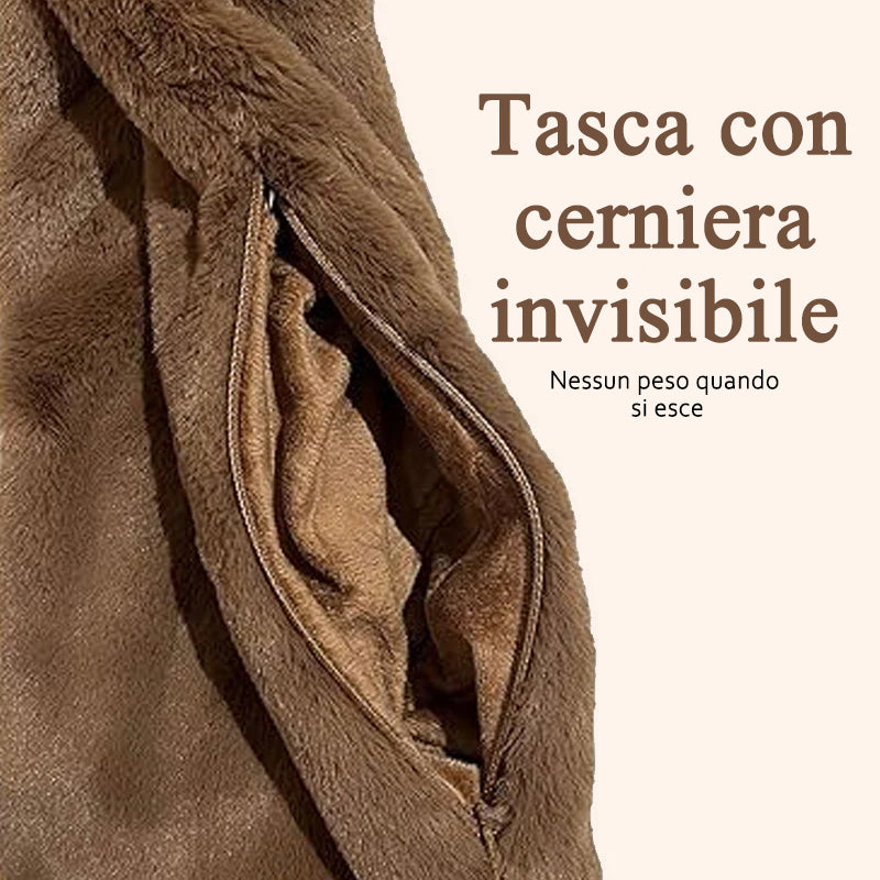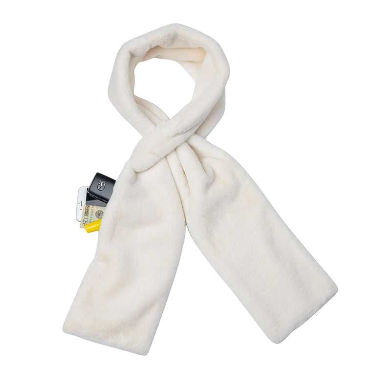 Sciarpa in pelliccia sintetica con tasca nascosta con cerniera